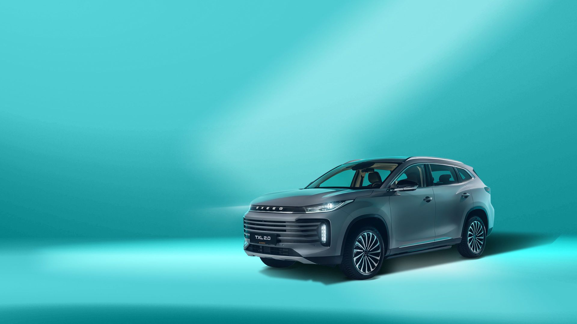 Exeed TXL 2.0 получил контрастные тормозные суппорты и затемненные задние стекла, а также подножки с подсветкой и логотипом, которые автоматически выдвигаются при открытии дверей.